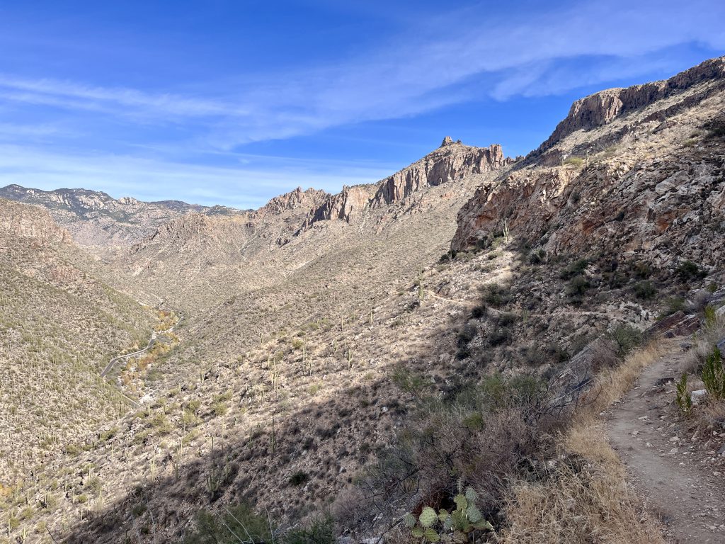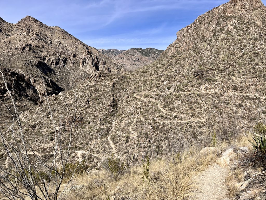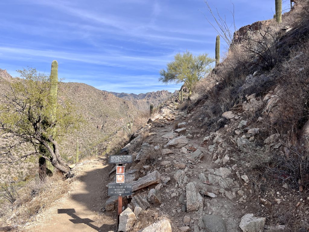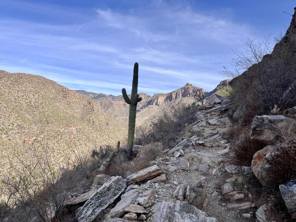 This is a long hike. Pack accordingly and plan for this hike to take at least a half day to complete. If mid hike you feel you have over committed, consider exiting Phoneline trail early via either the Phoneline Link Trail or Sabino Historic Trail.
