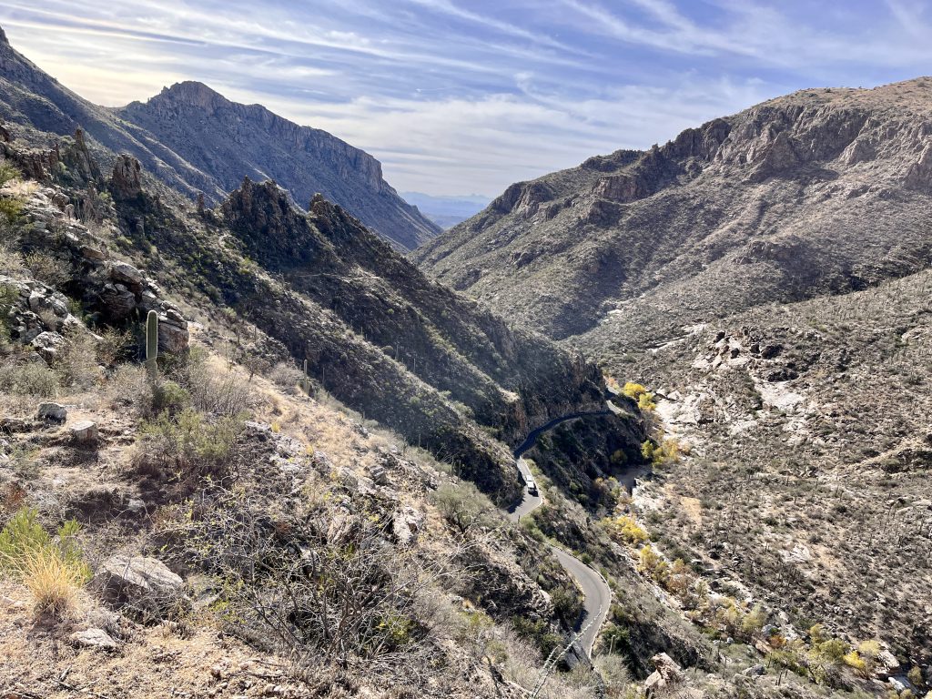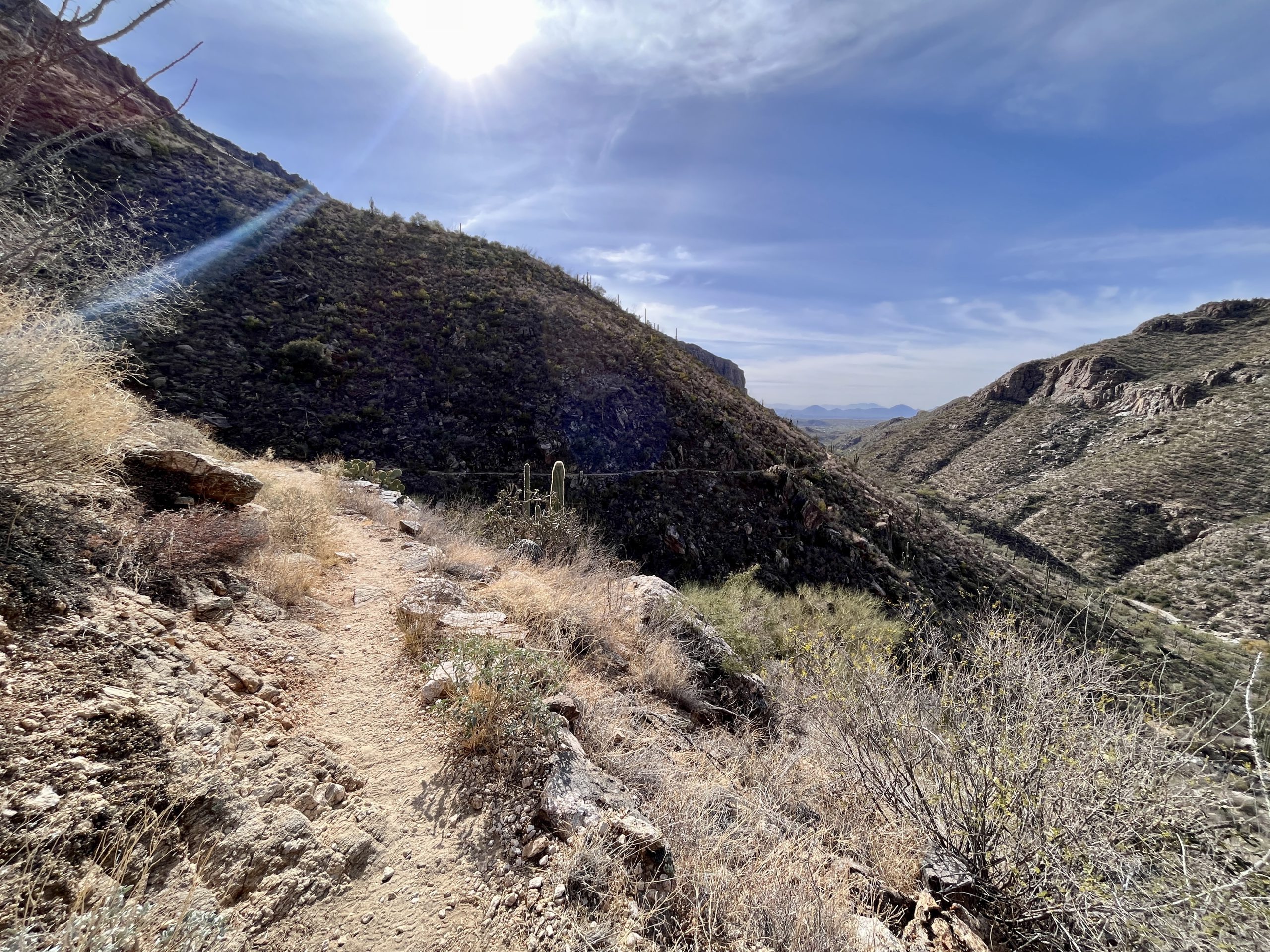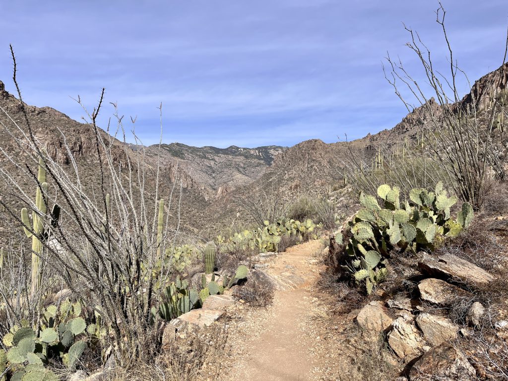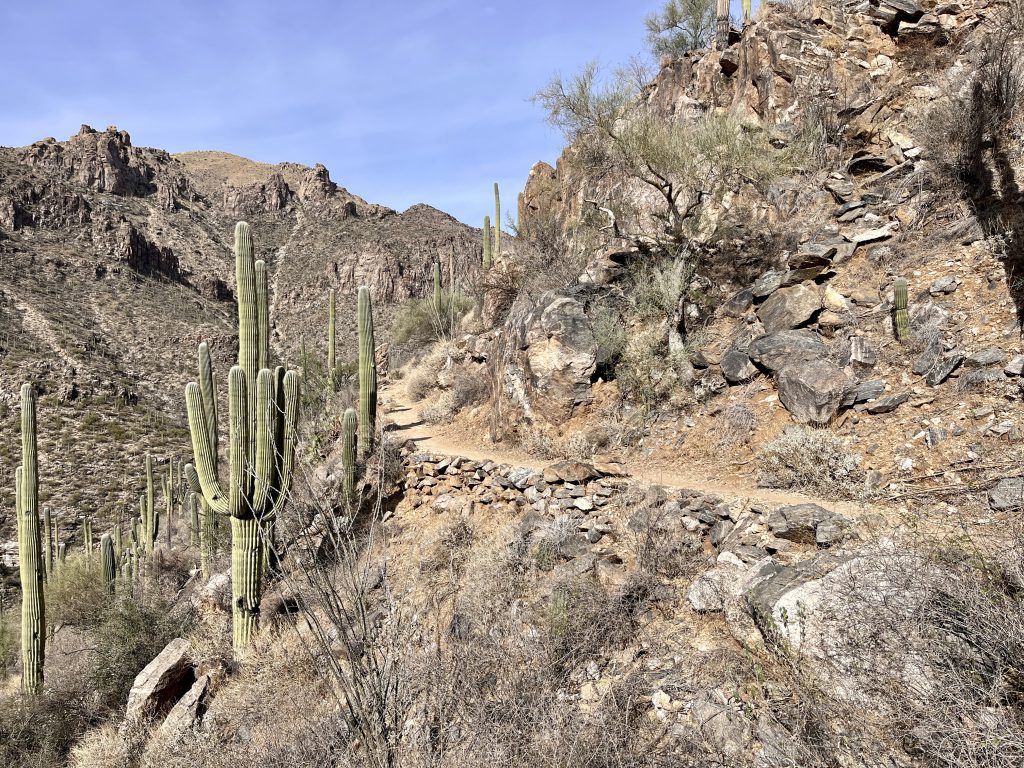 This is a long hike. Pack accordingly and plan for this hike to take at least a half day to complete. If mid hike you feel you have over committed, consider exiting Phoneline trail early via either the Phoneline Link Trail or Sabino Historic Trail.