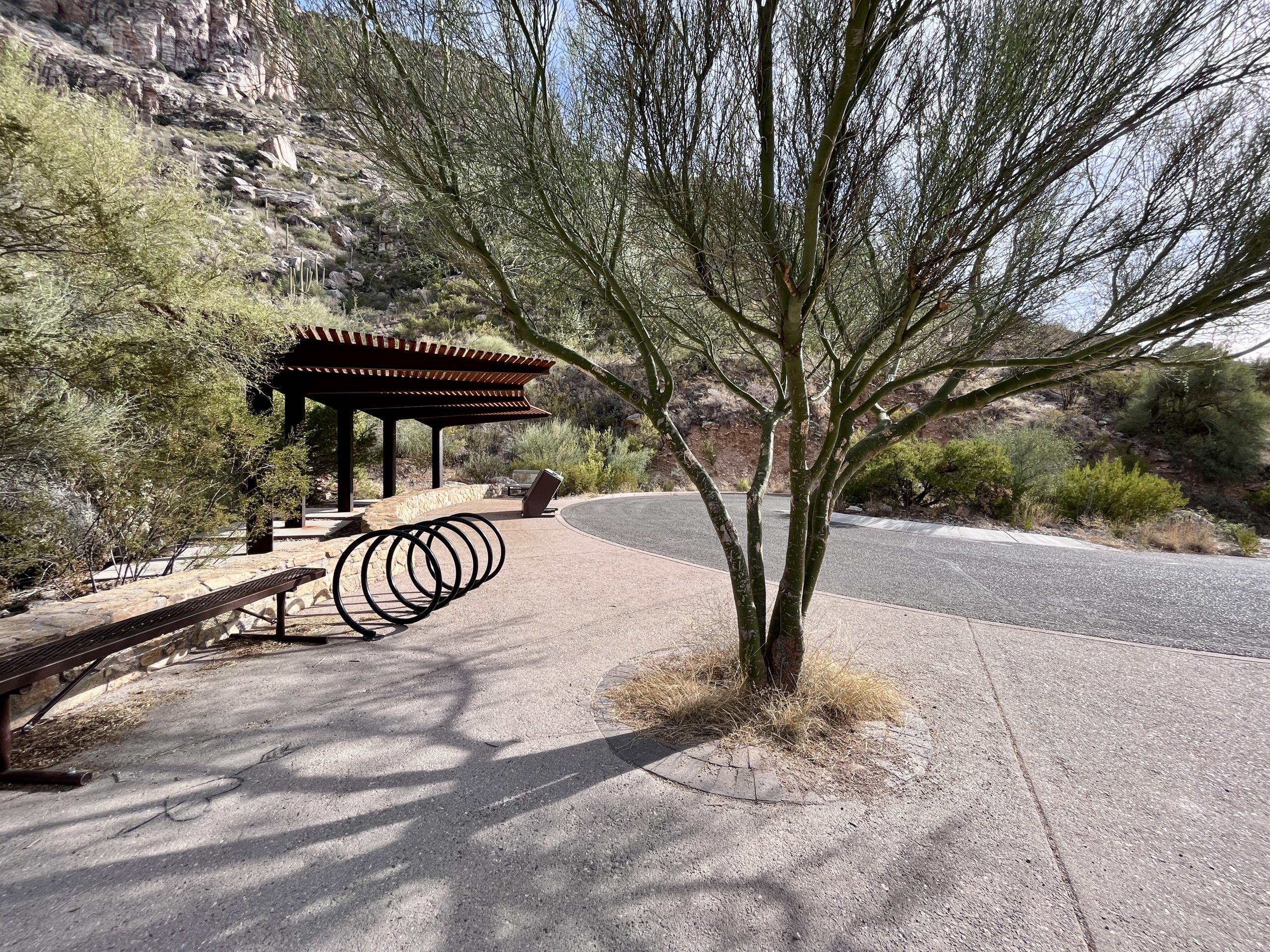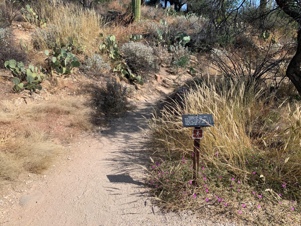From the visitor center take the Bear Canyon Trail east for a half a mile to its junction with Bear Canyon Road. Take a right on Bear Canyon Road and follow it for a quarter mile to Bear Canyon Shuttle Stop 2. Make a soft right at the Y in the road here and cross through Lower Sabino Creek. On the other side of the creek, you will come to a T in the road, however you will want to leave the pavement by continuing straight through the T and onto Phoneline Trail.