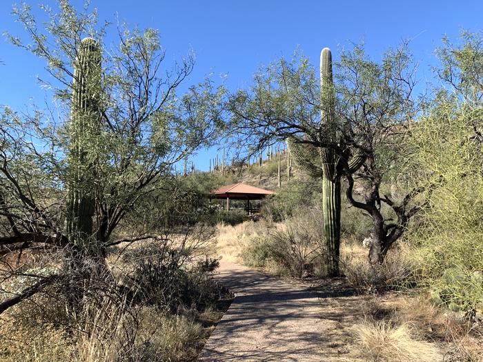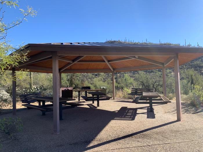 These ramadas are by reservation day use sites with shared potable water and restrooms. Access to the ramadas is through the use of the Sabino Canyon shuttle service or by foot travel 1/3-mile to the Cactus Picnic Area from the parking area. There are also many individual first-come, first-served picnic sites scattered throughout area.